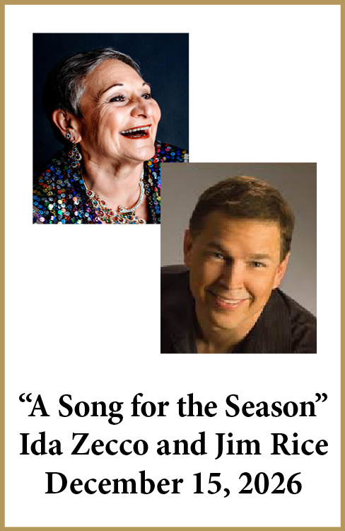 Buy Tickets HereWhat has now become a seasonal tradition, share the joy of this brightly packaged performance as Ida is joined by her long time Music Director and dear friend, Jim Rice. Ida and Jim sing selections from her successful CD “A Song for Christmas,” which has sold world-wide. It is a perfect, holiday entertainment – beautifully musical, filled with laughter and a performance that glitters with seasonal cheer!